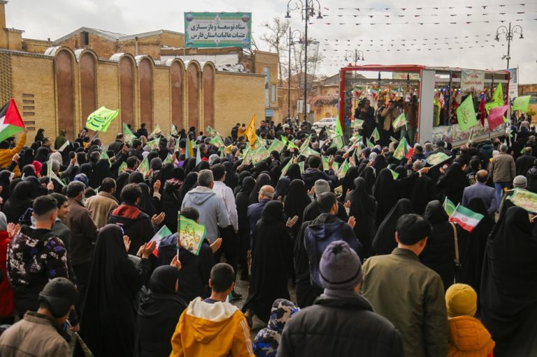 شاد پیمایی حماسه حضور برای ظهور به مناسبت فرا رسیدن نیمه شعبان امروز در هوای بارانی از میدان شهدای شهر شیراز تا حرم مطهر حضرت